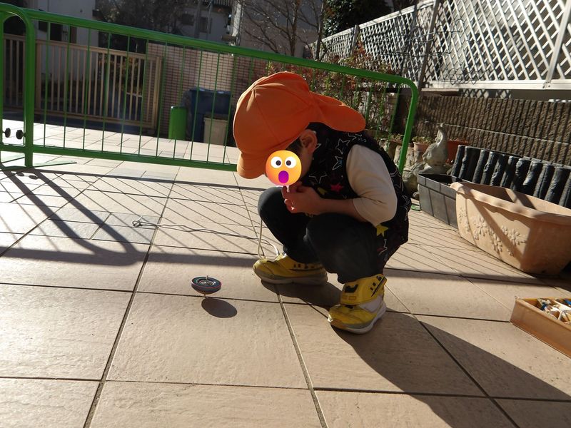 今日は、2才児クラスのこま回しの様子をご紹介します。